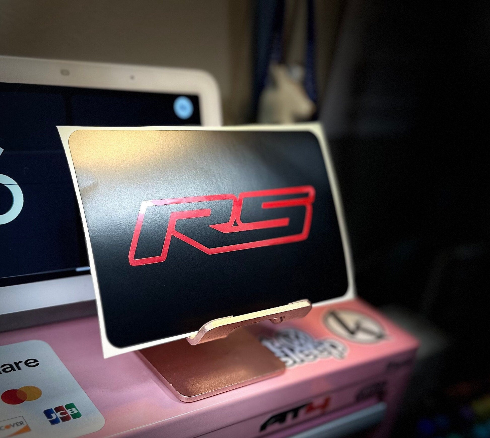 5. Now use that card to completely adhere & smooth your decal onto the surface (eliminate any bubbles from the top down).